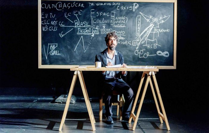 A partir de uma análise sin­tática e morfológica, o espetá­culo cria conexões entre os fatos apresentados e reflete sobre for­ças propulsoras para uma ideia de descolonização, sobretudo do pensamento. “Colônia” foi eleita uma das três melhores peças do ano de 2018 na cidade de São Paulo pelo jornal Estadão, além de indicada à melhor dramatur­gia pelo Prêmio APCA.