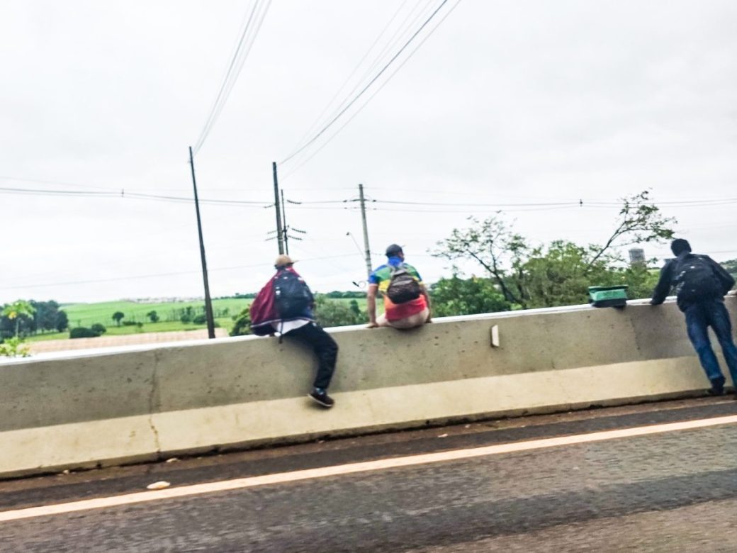 Três homens foram flagrados ao atravessar a pista de uma rodovia, na manhã desta segunda-feira (2). Eles se arriscaram no meio dos carros para atravessar a Rodovia José Fregonesi (SP-328), no trecho urbano, que liga Bonfim Paulista à avenida Presidente Vargas, na zona Sul de Ribeirão Preto.