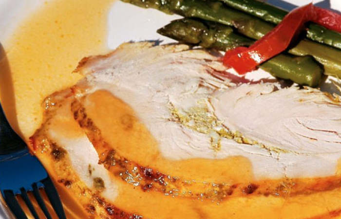 5. Coloque o frango em uma assadeira e banhe com o tempero.