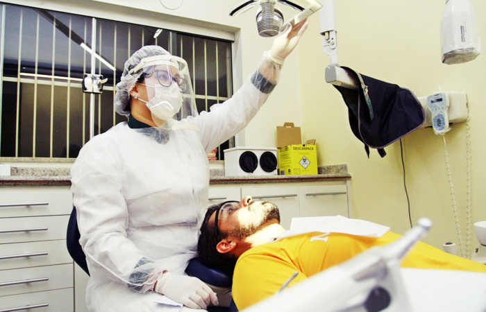 O que seria um alento à população, que tem conseguido marcar as consultas odontológicas, ao mesmo tempo, torna-se uma preocupação para os profissionais da odontologia. É que, como a doença se propaga via gotículas respiratórias, os dentistas estão no topo da classificação de risco de contaminação pela covid-19 e são os mais suscetíveis a contrair a doença, dentre todos os grupos de linha de frente, que são os profissionais da área da saúde.