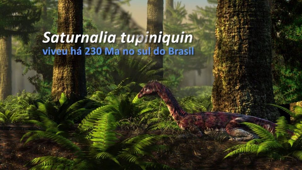 Saturnalia tupiniquim foi um dinossauro de pequeno porte, com cerca de 1,5 metros de comprimento e pesando aproximadamente 10 quilos. Os fósseis do Saturnalia foram encontrados há cerca de 20 anos na área urbana de Santa Maria, no Rio Grande do Sul. “Muitos detalhes da anatomia do esqueleto pós-craniano (membros, coluna vertebral e cinturas) do Saturnalia já eram conhecidos, mas essa é a primeira vez que partes de seu crânio foram estudados, incluindo a reconstituição do cérebro com base em microtomografia computadorizada”, diz Bronzati. Saturnalia pertence à linhagem de dinossauros conhecida como Sauropodomorpha, que inclui os maiores animais terrestres que já habitaram o planeta, os saurópodos, que podiam alcançar até 40 metros de comprimento, e pesar até 90 toneladas.