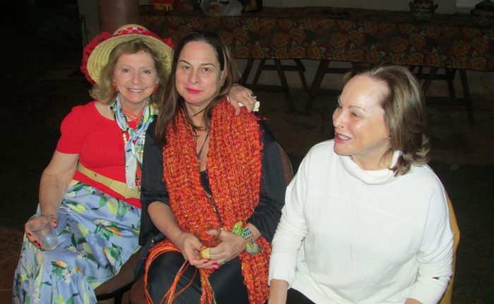 A empresária Sirene Gregoldo pendurou bandeirinhas, iluminou balãozinhos, hasteou o mastro com os Santos Antônio, Pedro e João, e acendeu a imensa fogueira nos jardins de seu “chateau”. Na mega mesa coberta com toalha estampada, os convidados se esbaldaram com guloseimas de festa junina. Um festão!