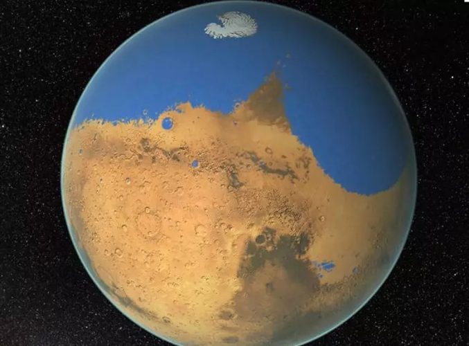 Os resultados foram publicados na segunda-feira na revista Proceedings of the National Academy of Sciences. Se a localização da InSight em Elysium Planitia, perto do equador de Marte, for representativa do resto do planeta vermelho, a água subterrânea seria suficiente para encher um oceano global com cerca de uma milha (1 quilômetro a 2 quilômetros) de profundidade, disse Wright.