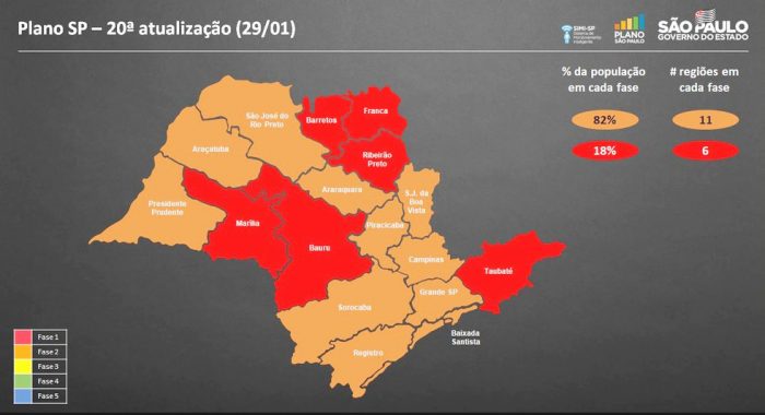 A medida não altera as regras na região do 13º Departamento Regional de Saúde (DRS-XIII), que abrange Ribeirão Preto e mais 25 cidades, rebaixada na sexta-feira, 29 de janeiro, da fase laranja para a vermelha, na qual apenas os serviços essenciais podem funcionar. As novas regras seguem até domingo (7).