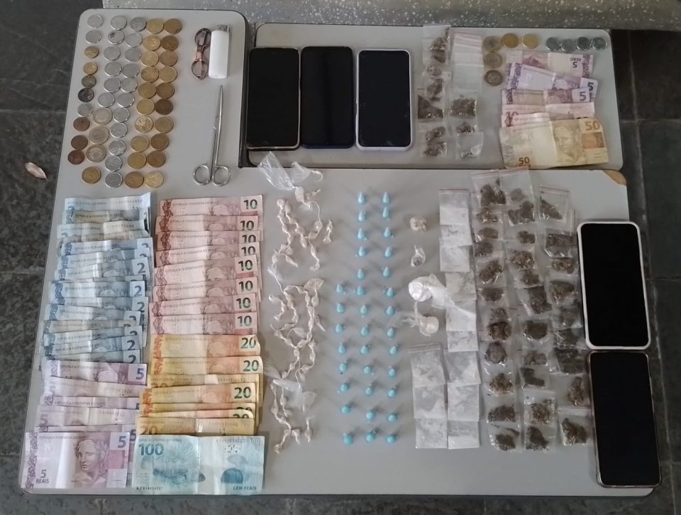 Ao realizar a abordagem, encontraram grande quantidade de drogas com as duas – uma das quais, menor de idade. Além disso, estavam com dinheiro e cinco telefones celulares.