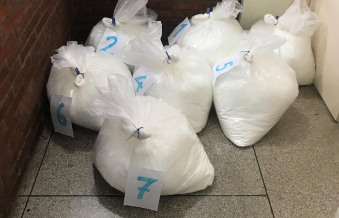 Na revista domiciliar, foram apreendidos 200 quilos de um pó branco que seria usado para misturar na cocaína, aumentando o volume e valor agregado, R$ 2.355 reais em dinheiro, balança de precisão, materiais para embalagem, cofre e munições.