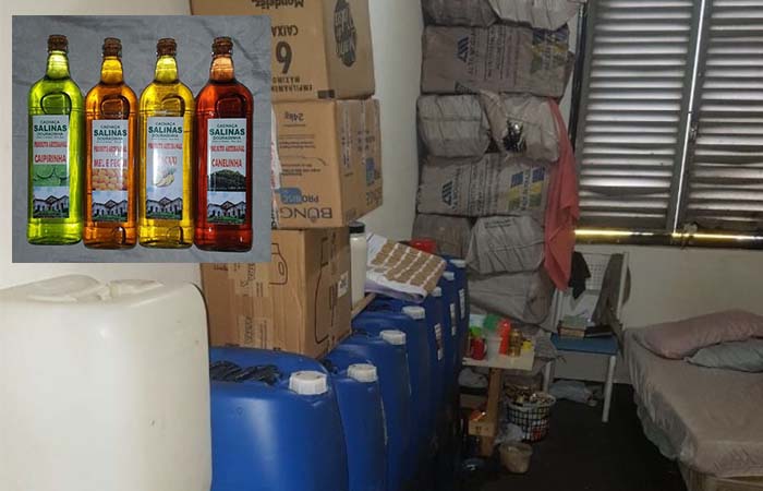 Ele foi avisado que deveria franquear acesso e os PM´s, ao entrarem no quarto, encontraram seis galões com 50 litros de cachaças, grande quantidade de garrafas de vidro que seriam usadas para envasar a bebida ali mesmo “fabricada”, corantes, etiquetas e vidros de outros tamanhos para perfumes. Uma “destilaria” adaptada em cômodo de oito metros quadrados.