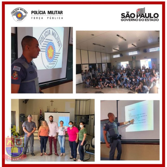 As palestras foram realizadas por policiais militares em escolas das cidades de Santa Rosa de Viterbo e Guatapará, com o objetivo de conscientizar as crianças contra o uso de drogas e afastados da violência.