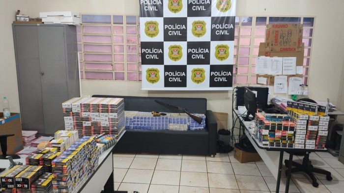 A Polícia Civil apreendeu cerca de 2,5 mil maços de cigarros, mais de 200 isqueiros, além de uma arma de fogo e munições, durante uma operação para coibir crimes contra o patrimônio e auxiliar no cumprimento de mandados judiciais.