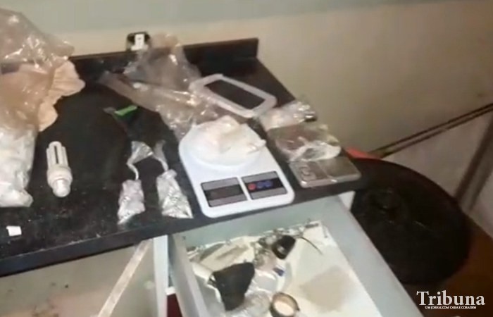 Centenas de pinos de cocaína foram apreendidos. Informações preliminares apontam que o tráfico ocorria em cinco pontos de distribuição na cidade.