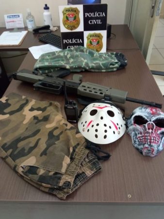 Policiais civis encontraram, nesta terça-feira (19), um simulacro de fuzil, roupas camufladas e máscaras de filmes de terror, além de um rádio comunicador, na casa do adolescente que planejou atacar a Escola Estadual Professor Luiz Latorraca, na cidade de Jaboticabal.