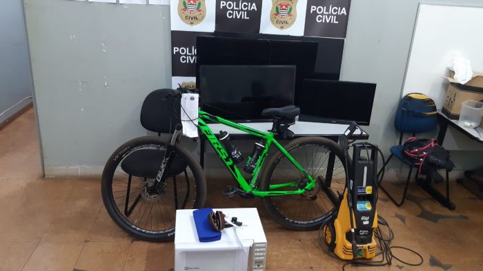 Além dos veículos, também foram localizados objetos de procedência ilícita, como bicicleta, televisores, aparelhos celulares, microondas, entre outros.
