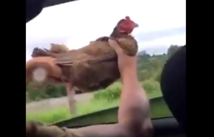 No vídeo, os jovens aparecem dentro de um carro. Um deles segura a ave para fora da janela. Em seguida, enfia a cabeça da ave sob as asas e a sacode no ar.