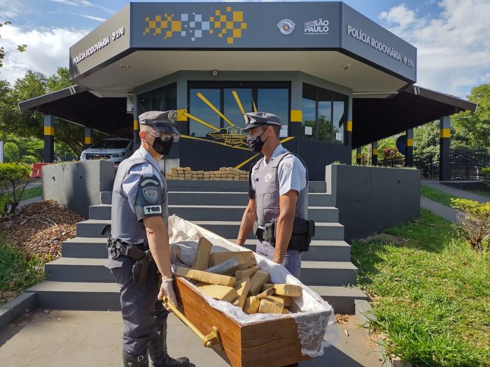 Agentes da Polícia Militar Rodoviária (PMRv) apreenderam tijolos de maconha na manhã desse domingo, 12 de dezembro, que estavam escondidos dentro de um caixão. A ação ocorreu na Rodovia Raposo Tavares (SP-270), em Assis, cidade localizada a cerca de 350 km de Ribeirão Preto.