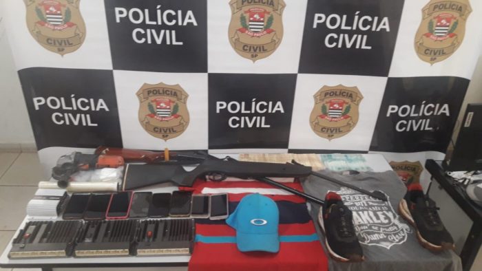 Módulos de ignição e armas apreendidas durante cumprimento dos mandados de busca e apreensão (Divulgação/Polícia Civil de Jardinópolis)
