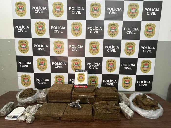 Num cômodo, aos fundos da casa, os policiais localizaram diversos tijolos de maconha em um freezer. Havia também uma arma calibre 380 com numeração raspada. A droga e a arma foram apreendidas e levadas à sede da DISE/DEIC, para onde o homem e a mulher presos também foram conduzidos.