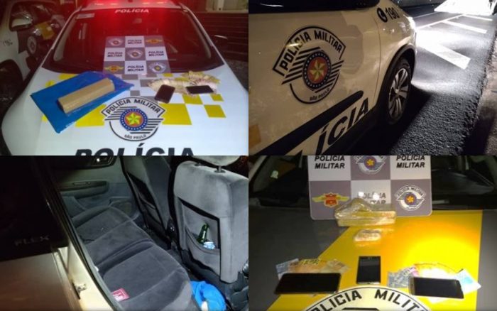 Na primeira ocorrência, por volta do Km 316, os militares abordaram um casal em um veículo com placas de Bocaina (SP), que carregava 1 Kg de maconha e 107 g de crack, escondidos no banco dianteiro do passageiro.