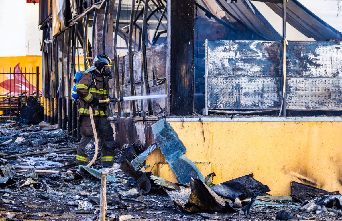 O combate às chamas durou até o final da tarde e a estrutura foi colapsada. As instalações ficaram totalmente destruídas e a perda de mercadorias foi total.