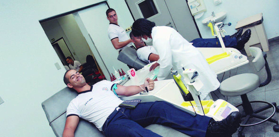 Policiais militares estiveram no Hemocentro de Ribeirão Preto na manhã desta sexta-feira, 26 de janeiro, para aderir à campanha de doação de sangue da unidade. A banda da corporação compareceu para animar o recinto. Os doadores e doadoras devem ter entre 16 e 69 anos. Para os menores de 18 anos, é necessário o consentimento dos responsáveis e, entre 60 e 69 anos, a pessoa só poderá doar se já o tiver feito antes dos 60 anos. Além disso, é preciso pesar, no mínimo, 50 quilos e estar em bom estado de saúde. O candidato deve estar descansado, não ter ingerido bebidas alcoólicas nas 12 horas anteriores à doação e não estar de jejum. No dia, é imprescindível levar documento de identidade com foto.