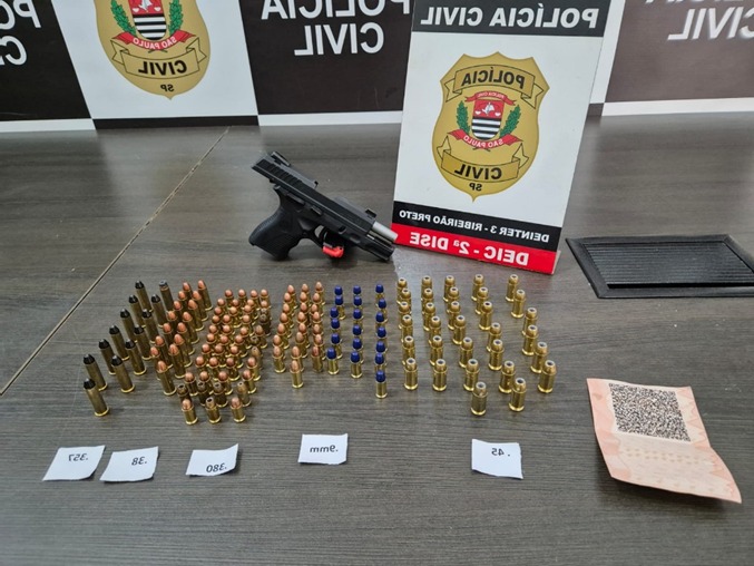 Policiais Civis de Ribeirão Preto, por meio da DEIC – Divisão Especializada de Investigações Criminais, cumprindo mandato de busca nesta segunda-feira, 8, pela manhã, encontraram na casa do investigado, grande quantidade de armamentos.