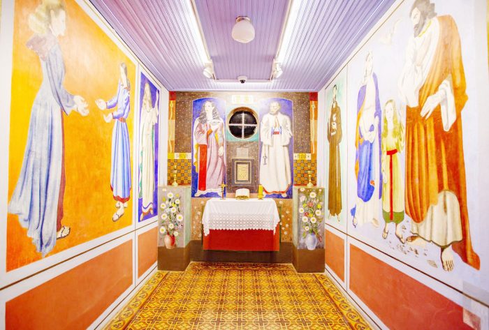 Candido Portinari mandou construir, em 1940, uma capela ao lado da casa da avó Pelegrina, que por conta da idade e problemas de saúde não conseguia se locomover até a igreja para orar. Nas paredes estão os santos prediletos da avó, retratados pelo artista com a fisionomia de amigos e parentes. A obra terminou em 1941. A Capela da Nonna é um dos principais espaços do Museu Casa de Portinari.