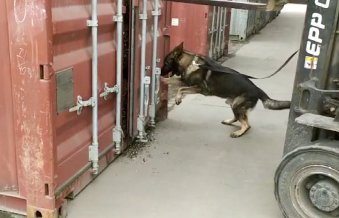 A carga foi selecionado para conferência através de critérios objetivos de análise de risco, incluindo a inspeção não intrusiva por escâner. O cão de faro da Receita Federal sinalizou positivamente para a presença de drogas e, aberto o contêiner, foram encontradas, em meio à sucata, 34 bolsas esportivas envoltas em papel aluminizado, contendo diversos tabletes de cocaína.