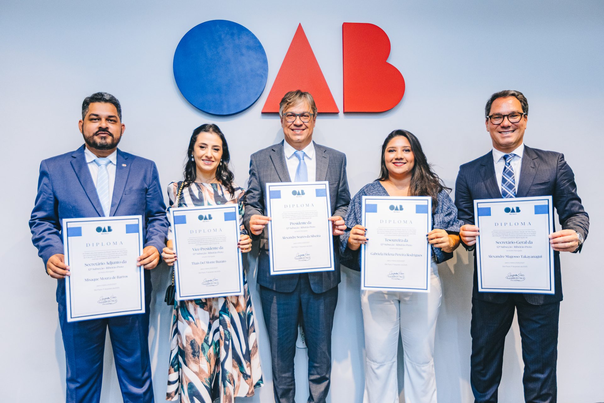 A 12ª Subseção de Ribeirão Preto, da Ordem dos Advogados do Brasil Seção São Paulo (OAB SP), teve sua diretoria eleita empossada na última quinta-feira (13). A solenidade, realizada no auditório da Casa da Advocacia, contou com a presença do presidente da Ordem paulista, Leonardo Sica, e da vice-presidente da Secional, Daniela Magalhães. A gestão da OAB Ribeirão Preto, durante o triênio 2025/2027, tem como presidente Alexandre Soares da Silveira; vice-presidente Thais Del Monte Buzato; secretário-geral Alexandre Magosso Takayanagui; secretário-geral adjunto Misaque Moura de Barros; e tesoureira Gabriela Helena Pereira Rodrigues. (Fotos Felipe Gondo – @felipegnd)
