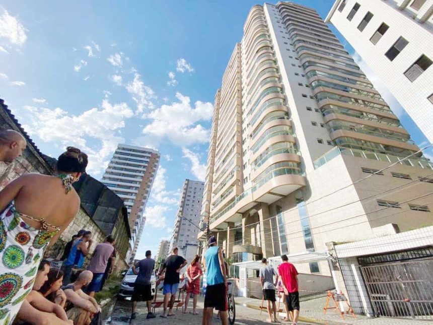 O prédio fica a 50 metros da praia, no bairro da Aviação, em Praia Grande. A Construtora JR, responsável pelo edifício, disse que deslocou engenheiros para verificar o problema e que as providências estão em andamento. O local estava ocupado por 230 moradores fixos e algumas dezenas de visitantes ou inquilinos de veraneio.