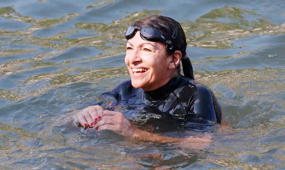 Vestida com roupa de neoprene e usando óculos de natação, Hidalgo mergulhou no rio perto da imponente prefeitura, do seu escritório e da Catedral de Notre Dame. Ela foi acompanhada pelo chefe do Comitê Organizador dos Jogos, Tony Estanguet, e por Marc Guillaume, um dos principais assessores da prefeita, que também mergulharam no rio.