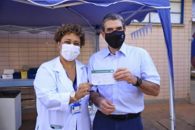 O prefeito de Ribeirão Preto, Duarte Nogueira recebeu na manhã desta quarta-feira, (16), na Unidade Básica de Saúde de Bonfim Paulista, Mamoro Kobayashi, a primeira dose da vacina contra a Covid – 19.