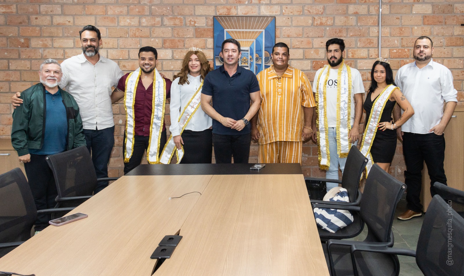 O prefeito Ricardo Silva, recebeu na tarde desta segunda-feira, dia 07 de julho a visita da corte LGBT 2025, eleita no último dia 26 de junho, em cerimônia realizada no Teatro Municipal. O encontro aconteceu no Centro Administrativo “Prefeito José de Magalhães, na rua Américo Brasiliense, 426, no Centro. Receberam os cumprimentos do prefeito: Danilo Augusto, Mister Gay; Samuel Augusto de Andrade, Mister Bissexual; Taylor Chiffon Violet, Miss Gay e Letícia Cristine Rocha Rodrigues, Miss Bissexual. Também estiveram presentes ao encontro o secretário da saúde, Maurício Godinho, o secretário de governo, Jean Vicente e o presidente do Instituto do Livro de Ribeirão Preto, Cláudio Romualdo.