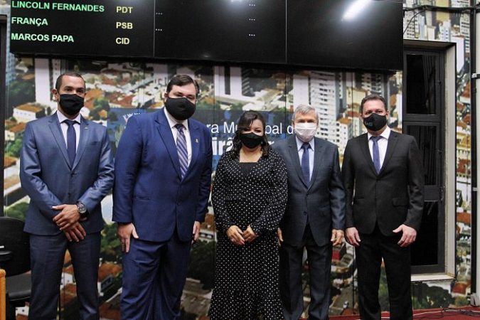 Já os vereadores realizaram, na Câmara, a eleição da nova Mesa Diretora do exercício 2021. Alessandro Maraca (MDB) foi eleito presidente daquela casa de leis. Bertinho Scandiuzzi (PSDB) o primeiro vice-presidente, Glaucia Berenice (Democratas) a segunda vice-presidente e dois vereadores em primeiro mandato: Matheus Moreno (MDB) e Franco (PRTB) ocuparão os cargos de primeiro e segundo secretários respectivamente.