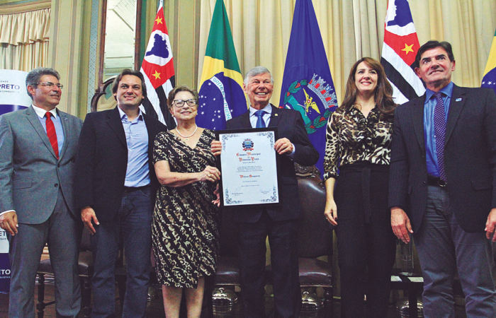 Nesta quarta-feira, 3 de abril, o Salão nobre do Palácio Rio Bran­co, sede da prefeitura de Ribeirão Preto, foi palco da cerimônia de homenagem a Welson Gasparini, que em 15 de março “pendurou as chuteiras” da vida pública, aos 82 anos de idade, 60 deles na política – foi eleito vereador pela primeira vez em 1959.