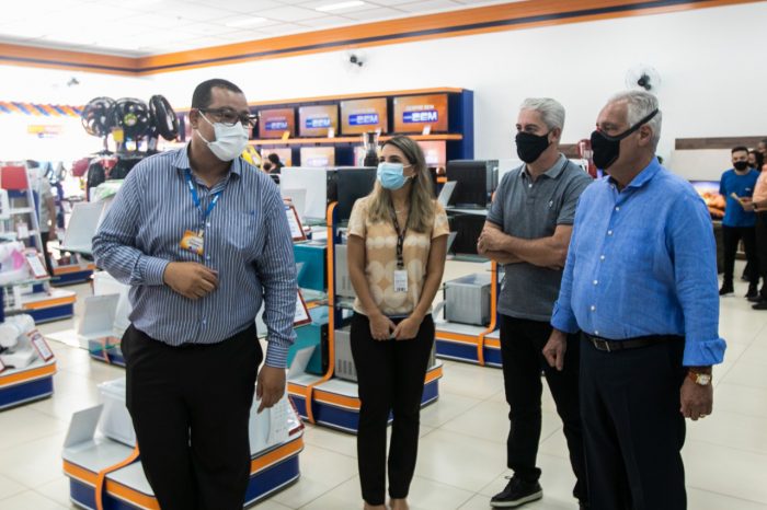 Na inauguração das Lojas CEM, no bairro Ipiranga, no último dia 18, o presidente da ACIRP, Dorival Luiz Balbino de Souza, cumprimenta o gerente da unidade, Damiel Jabur. Da inauguração também participaram Jian Carlos Framartino, superintendente da ACIRP Distrital Oeste e Renata Giorgetti, diretora da Distrital.