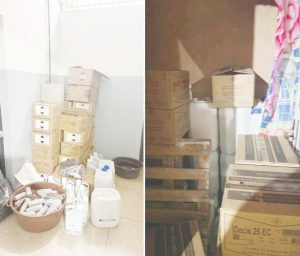 Durante vistoria na residência, os policiais localizaram um carro e diversos recipientes contendo inseticidas lacrados, além de frascos abertos com produtos misturados e aparentemente adulterados, utilizados na preparação e no fracionamento dos defensivos agrícolas.