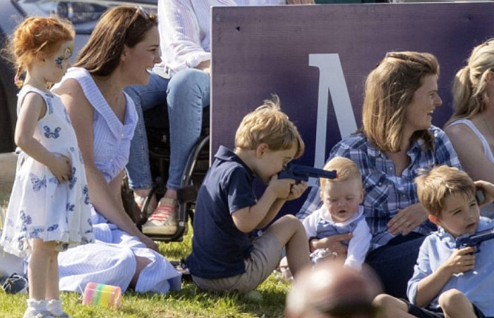 Uma foto do príncipe George segurando uma arma de brinquedo tem dividido opiniões nas redes sociais. Ao lado de sua mãe, Kate Middleton, no Maserati Royal Charity Polo Trophy, evento realizado no último domingo, 10, no Beaufort Polo Club, em Tetbury, na Inglaterra, George aparece junto a outros garotos brincando com uma pistola de brinquedo.