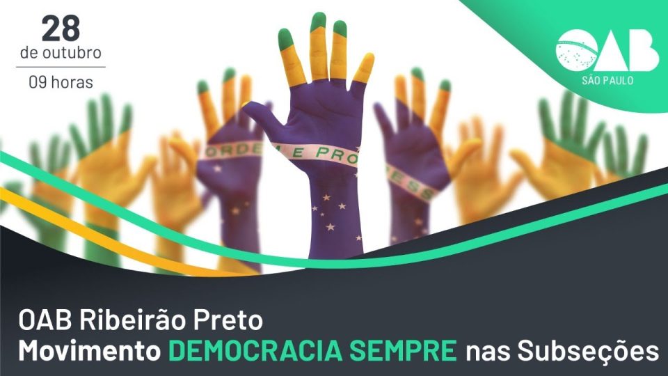 Na próxima quarta- feira (28), o Movimento Democracia Sempre chega à subseção de Ribeirão Preto, com transmissão online pela WebTV OAB SP, às 09h00. O presidente da Ordem Paulista, Caio Augusto Silva dos Santos, juntamente do presidente da subseção, Luiz Vicente Ribeiro Corrêa , receberão representantes regionais do poder executivo, legislativo, judiciário e da sociedade para discutirem a importância da democracia.