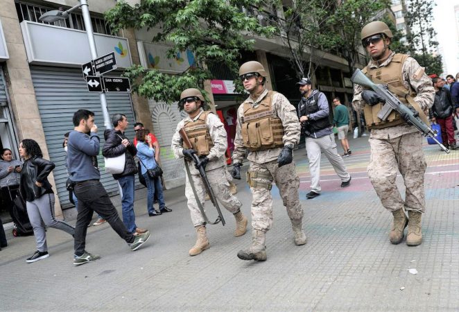 Tentativas de marchar até o palácio presidencial La Moneda foram barradas por barricadas policiais. A aprovação do presi­dente Sebastián Piñera está em 14%, segundo pesquisas recen­tes. Piñera recuou do aumento no metrô e fez outras conces­sões, mas não conseguiu até agora conter os protestos. Ma­nifestantes têm se concentrado agora em tentar mudar a Cons­tituição, dizendo que o foco dela em priorizar o controle privado sobre praticamente qualquer as­pecto da economia é a raiz dos problemas nacionais, seja quem for o presidente.