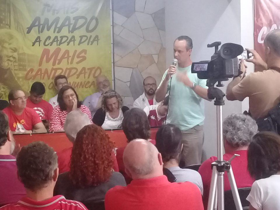 Cerca de 100 militantes do Partido dos Trabalhadores de Ribeirão Preto e região participaram, na manhã deste domingo (27), na sede da agremiação, de um ato de lançamento da pré-candidatura do ex-presidente Luiz Inácio Lula da Silva às eleições presidenciais de 2018. Lula está preso em Curitiba desde o dia 7 ade abril, na Superintendência da Polícia Federal, onde cumpre pena de 12 anos e um mês por corrupção ativa e passiva do processo do tríplex do Guarujá.