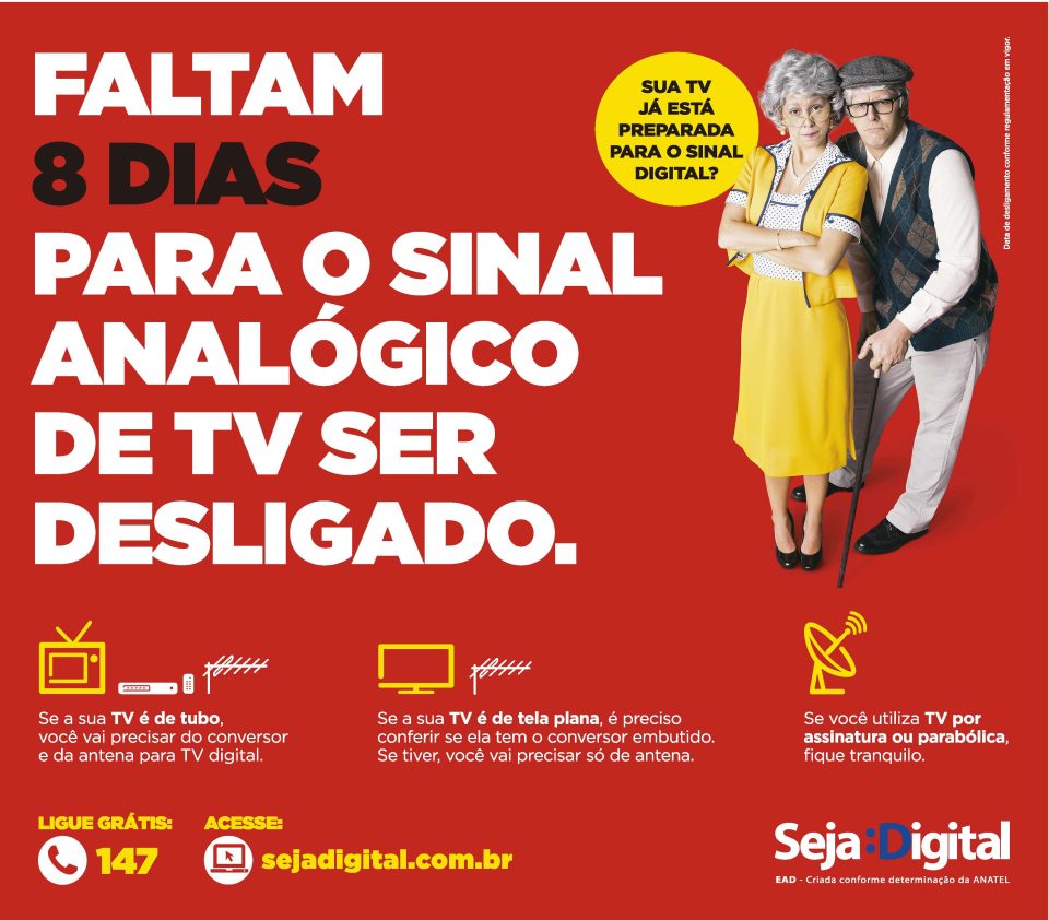 GeralPUBLICIDADE: EAD – Em 29/11 o sinal analógico de TV será desligado. 20 de novembro de 2017 08:50 Compartilhar0