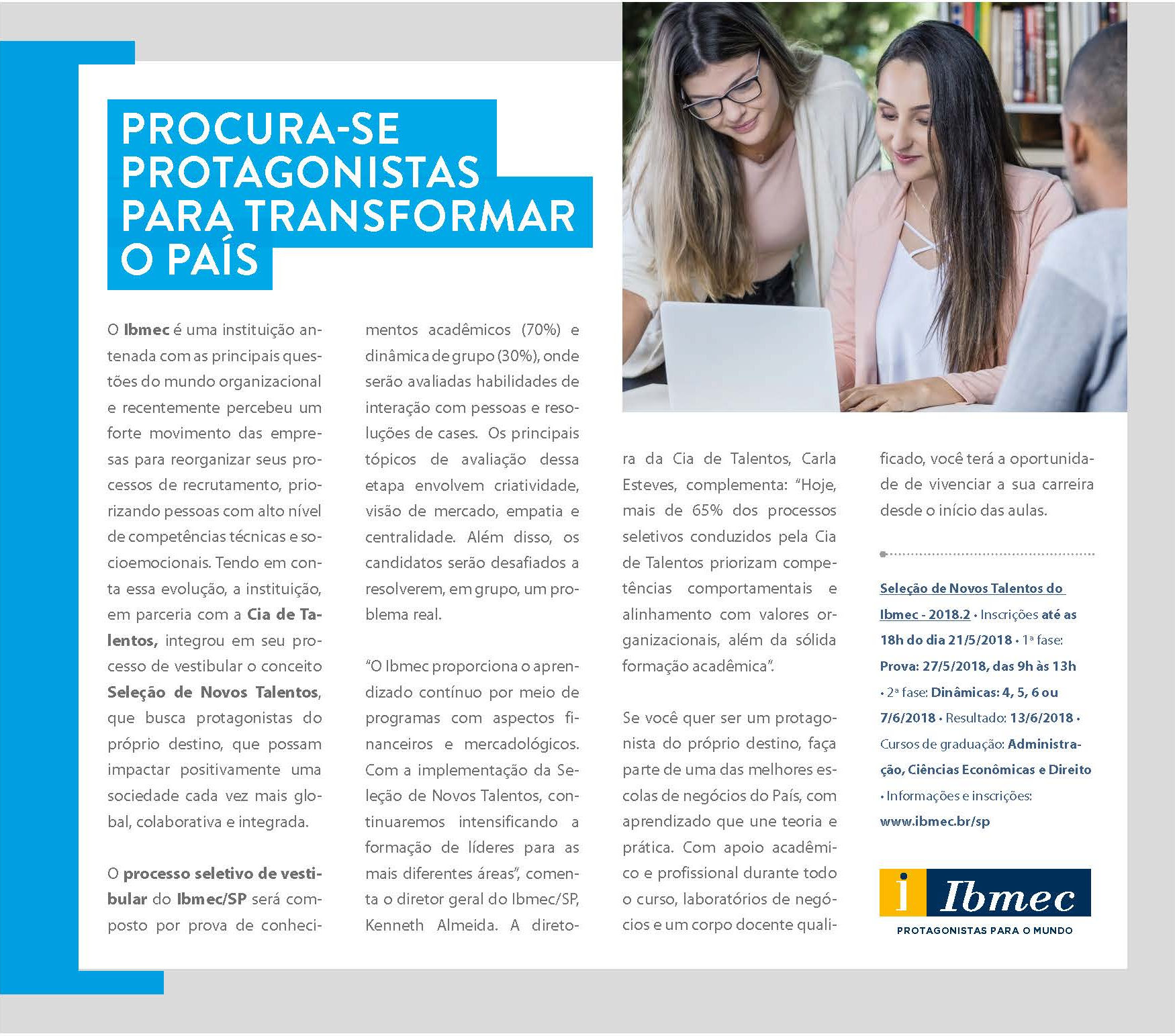 PUBLICIDADE: IBMEC – PROTAGONISTAS PARA O MUNDO
