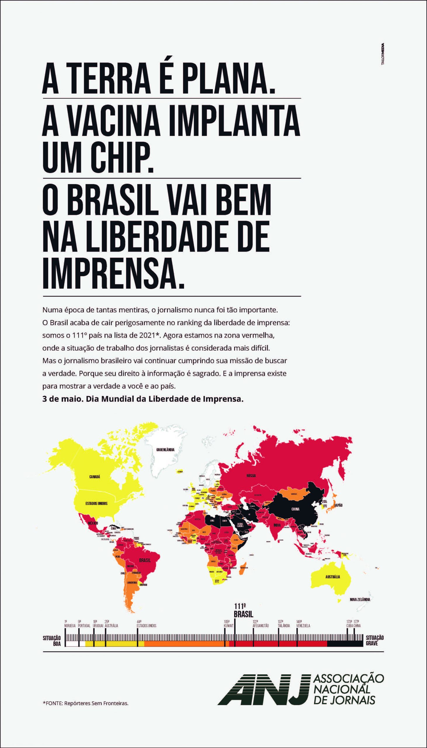 GeralPUBLICIDADE: Não existe democracia, sem liberdade de imprensa 30 de abril de 2021 08:11 Compartilhar0