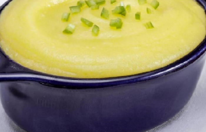3. Escorra a água e passe a mandioquinha ainda quente no espremedor.