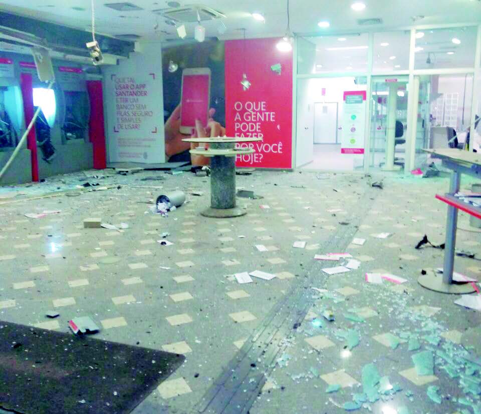O Banco Santander não infor­mou se dinheiro foi levado pelos assaltantes, mas divulgou nota que colabora com a Polícia Civil nas investigações. Os homens arma­dos com fuzis explodiram três cai­xas eletrônicos. Segundo a Polícia Militar, o grupo efetuou disparos para intimidar as equipes em pa­trulhamento. O crime ocorreu por volta de 5h15, na agência localiza­da na rua Barão do Rio Branco, em frente à praça 21 de Abril. O grupo conseguiu fugir com o dinheiro dos equipamentos e nenhum dos la­drões havia sido identificado até o fechamento desta edição.