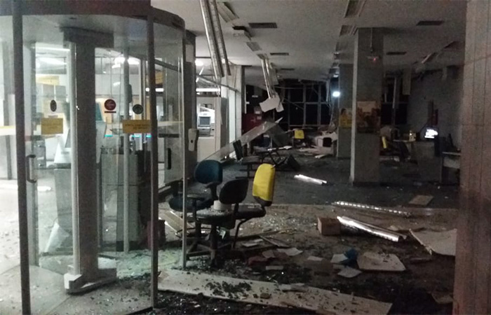 Uma quadrilha com pelo menos 15 homens fortemente armados explodiu duas agências bancárias e trocou tiros com a polícia em passo, no sul de Minas Gerais. O grupo ainda queimou dois ônibus na MG-050 e destruiu transformadores, provocando queda de energia na cidade – 46 residências ficaram sem luz. As aulas no campus da Universidade Estadual de Minas Gerais (UEMG) foram suspensas.