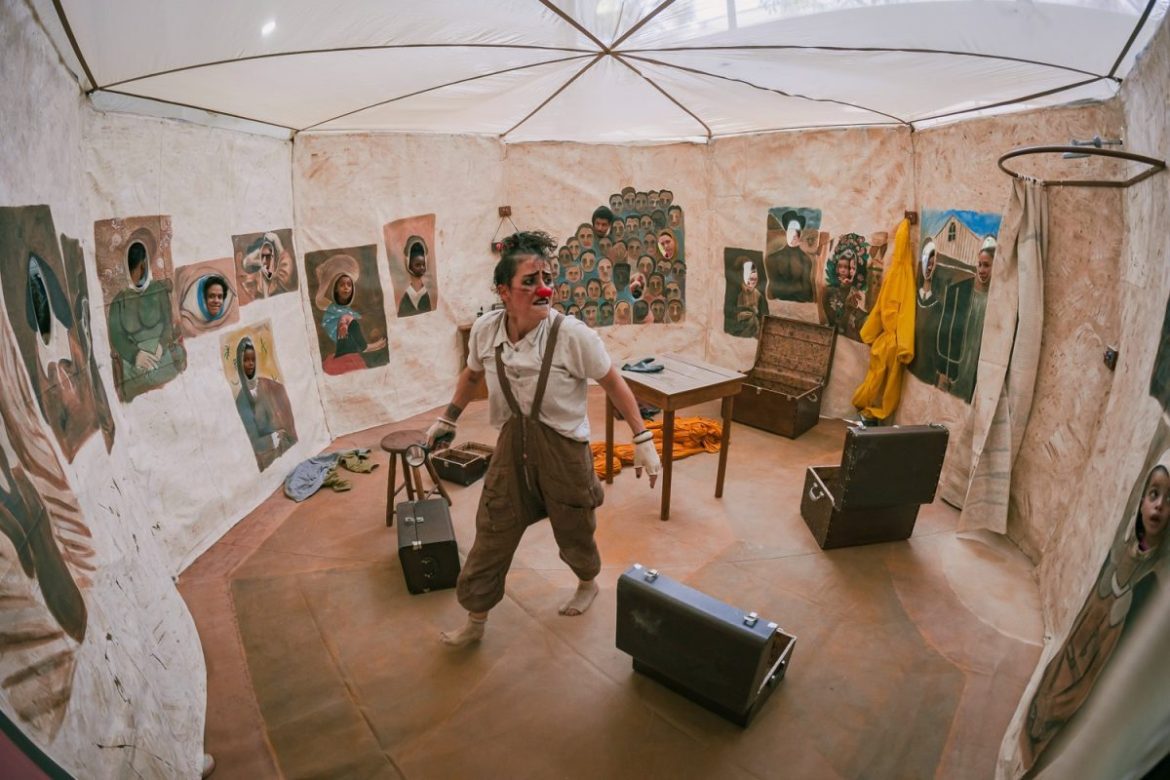 “A água no mundo acabou.” É a partir dessa premissa que se desenvolve a dramaturgia de atmosfera apocalíptica criada pelo grupo. Em cena, a palhaça Piolinha, interpretada por Cinthia Vendruscolo, surge como uma viajante do tempo em busca de qualquer vestígio de água ainda existente no planeta. Sob as ordens de uma misteriosa “encarregada superior”, que se comunica por meio de um rádio, a personagem conduz o público por uma jornada que equilibra humor, delírio e tensão.