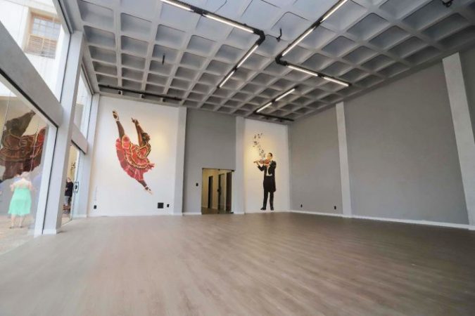 Também foram readaptados a sala contígua para constituição de recepção, dois vestiários e almoxarifado, e a sala multiuso climatizada para dança, música, circo e outras atividades artísticas, com 120 metros quadrados e equipada com espelhos, barras, ganchos para atividades circenses e piso com amortecimento adequado.