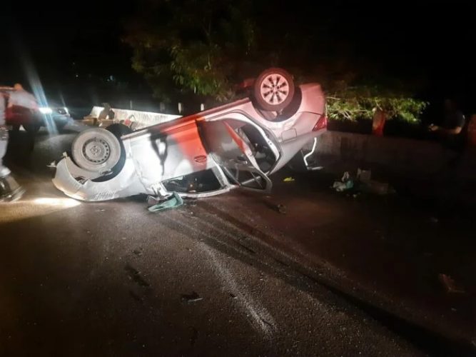 Próximo do acesso ao bairro Adelino Simioni, o motorista teria perdido o controle de direção e capotou o carro. Um dos ocupantes conseguiu fugir. Os outros quatro foram detidos.