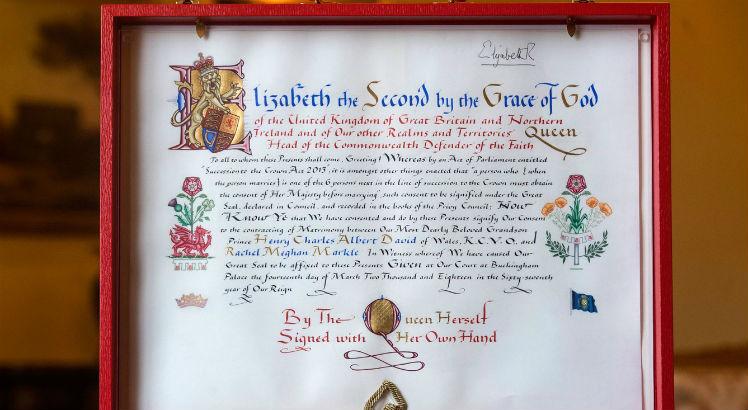 Rainha Elizabeth II assina documento que autoriza casamento de Harry e Meghan