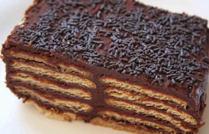 6. Continue assim até acabarem as bolachas e finalize com o creme de chocolate.